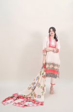 The shirt is adorned with a lively floral print on border featuring an array of colors that exude vitality and aplomb, further enhanced by a printed neckline which is a combination of geometric & floral motifs. The dupatta showcases the captivating border of floral motifs, bringing a cohesive charm to the ensemble. This dress promises a lively style that captures the essence of autumn.