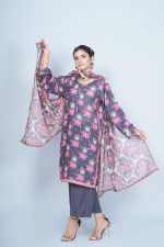 Paired with solid black color trouser, this outfit ensures a cohesive and polished look. The highlight of this ensemble is the flowing dupatta, showcasing a larger, bolder interpretation of the kurta’s motifs in a repeating pattern. The dupatta’s rich border, accented with subtle hints of blush, frames the design, adding an extra layer of sophistication to your look.